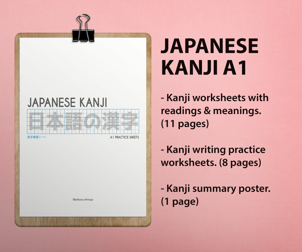 With these worksheets you can learn the readings and meanings for the kanji of LEVEL A1!