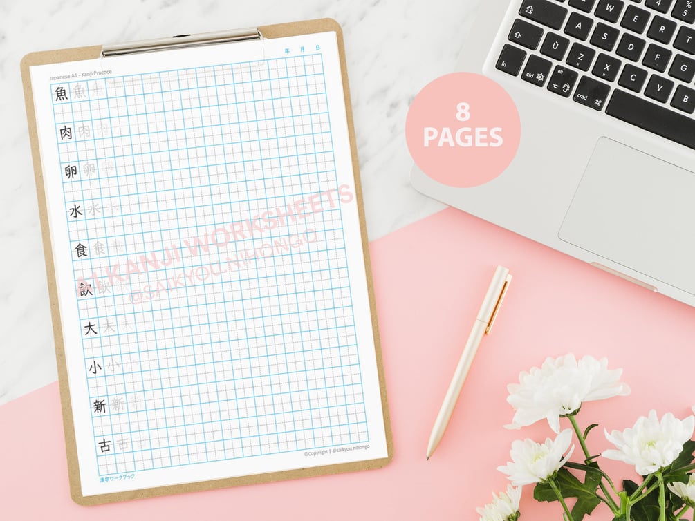 Japanese Printable Worksheet 20 Pages of Kanji Practice - A1 Level based on The Marugoto Series